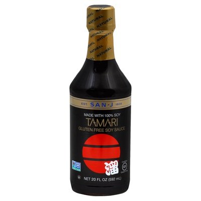 PRODUCT DETAILS: Gluten free soy sauce. Natural. Est. 1804. Made with 100% soy. Non GMO project verified. Certified gluten-free. San-J Gluten Free Tamari is a premium soy sauce that is naturally brewed with 100% soy and no wheat whereas regular soy sauce is made with 40-60% wheat. Higher concentration of soy protein gives San-J Tamari a richer and smoother taste than regular soy sauce. San-J Gluten Free Tamari has more flavor enhancing properties than salt. Reduce sodium intake and enjoy the full flavor of your dish by added 1 tsp Tamari (327 mg sodium) instead of 1/4 tsp salt (590 mg sodium). Stir-fry or marinate poultry, meat, seafood, vegetables and tofu. Add 1-2 tsp to perk up sauces, soups, gravies and casseroles. No artificial preservatives and no msg added. Brewer of premium tamari, established in 1804, Japan.